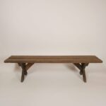 Wooden bench with a sturdy plank seat and trestle-style legs. A versatile and timeless piece suited for outdoor events.