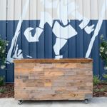 The Blake Bar features a unique exterior crafted from reclaimed pallet planks, giving it a rugged, weathered look full of character. Its raw, textured finish brings an effortlessly cool, rustic feel to any event setting.