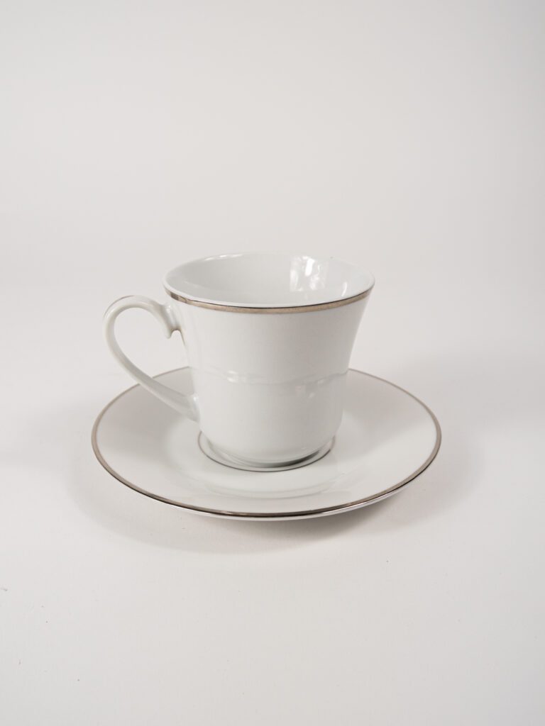 – White & Platinum Coffee Cup & Saucer