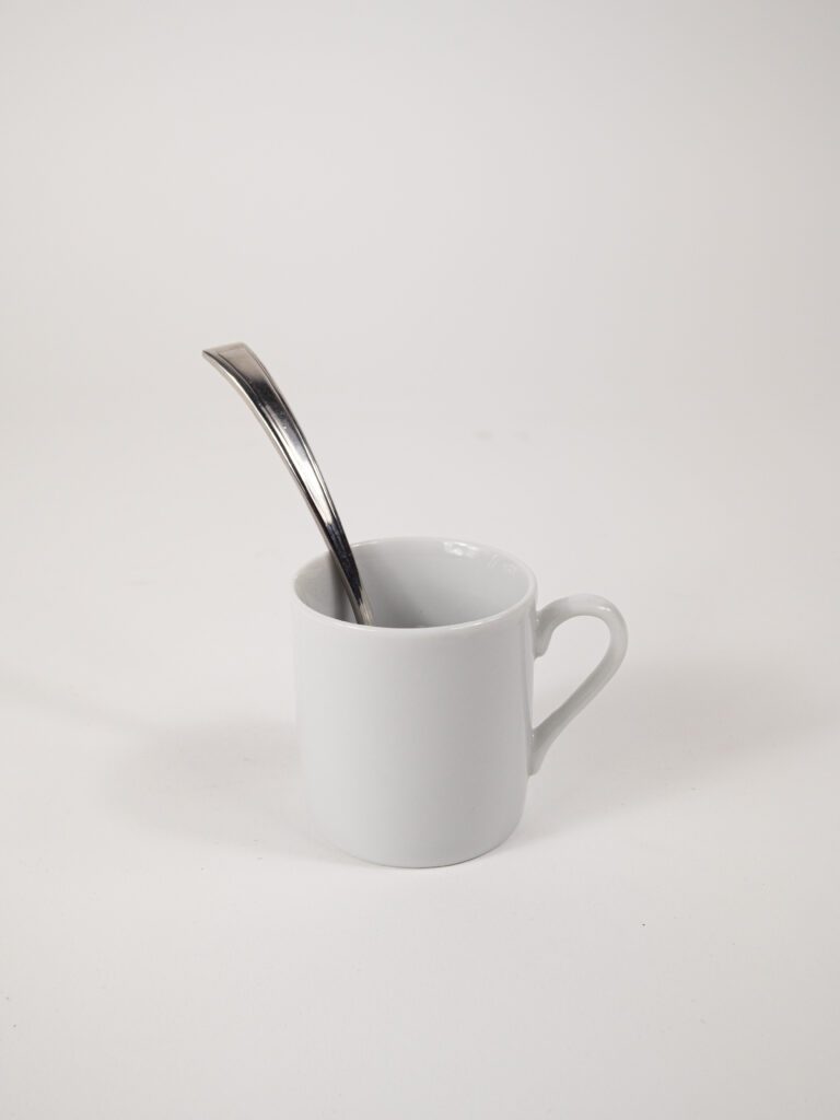 – White Rim Demitasse Cup 3.5oz & Demitasse Pantheon Spoon