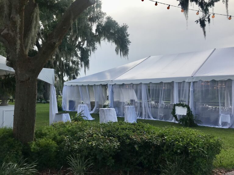 Our Frame Tents are available in 20′, 30′ and 40′ widths, each offered in multiple lengths. See our Frame Tent Size Guide to find the best fit for your event.