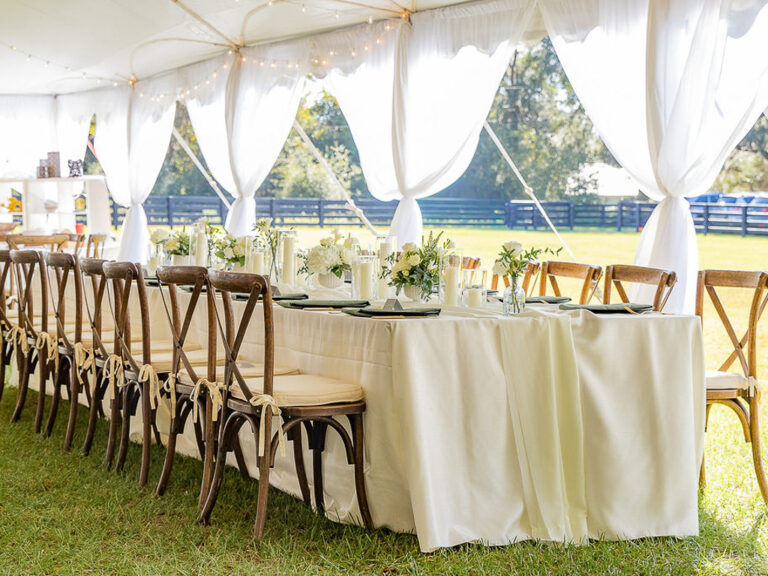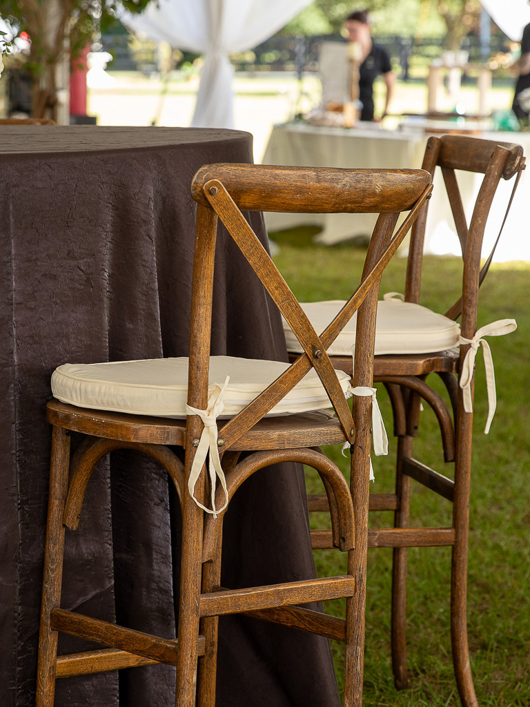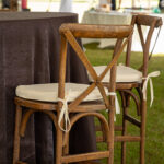 Crossback chair with a rustic aesthetic. The x-back design creates a unique style while also providing support.