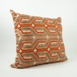 The Geometric Orange Pillow with Gold Beading offers a playful mix of bold color and shimmering detail. A chic, decorative accent with a touch of glamour.