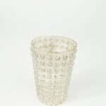 The Gracie Votive features a distinctive textured exterior with raised bumps that add visual interest and tactile appeal. It includes a tealight candle, creating a warm and inviting glow perfect for enhancing any space