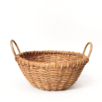 A round, handwoven basket with built-in handles and timeless texture. Ideal for decorative styling, storage accents, or event displays, this piece adds a natural, effortless touch to any setting.