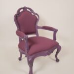 Vibrant purple armchair with intricate frame details and tonal upholstery. This bold accent chair is sure to command attention.