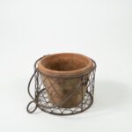 Rustic Pot with Wire Basket features a simple pot nestled inside a metal wire basket. The combination of materials adds a charming farmhouse touch, making it perfect for displaying plants or decorative arrangements.